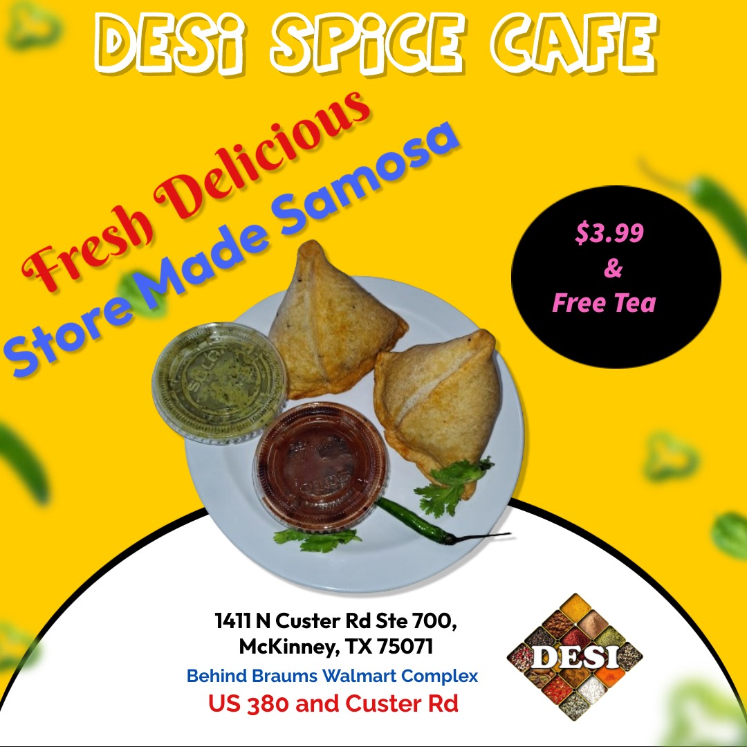 Welcome to Desi Spice Cafe, a vibrant Indian cuisine restaurant cum café located at 1411 N Custer Rd #700, McKinney TX. Inspired by the bustling cities of India, our establishment aims to transport you to the heart of India with its rich flavors, aromatic spices, and warm hospitality. At Desi Spice Cafe, we strive to offer an authentic and memorable dining experience that showcases the diverse and vibrant culinary traditions of India. Our menu features a tantalizing array of dishes that cater to both the seasoned spice connoisseur and the curious food explorer. From mouthwatering desi food delicacies to traditional regional specialties, we take pride in curating a menu that captures the essence of Indian cuisine. Our skilled team of chefs, trained in the art of Indian cooking, meticulously prepares each dish using the finest ingredients and traditional cooking techniques. We believe in preserving the authenticity of our recipes while adding a contemporary twist to create a fusion of flavors that will delight your taste buds. Whether you're craving the fiery spices of North Indian curries or the delicate flavors of South Indian dosas, our menu has something to satisfy every palate. Step inside our vibrant and welcoming space, adorned with colorful Indian artwork and a lively ambiance. Our restaurant reflects the vibrant spirit of Indian culture, allowing you to immerse yourself in the sights, sounds, and tastes of the subcontinent. Whether you're joining us for a quick bite during your lunch break or indulging in a relaxed dinner with loved ones, our attentive and friendly staff will ensure your visit is nothing short of exceptional. In addition to our delectable dining options, Desi Spice Cafe also offers a cozy café setting, perfect for catching up with friends over a cup of aromatic Indian chai or enjoying a freshly brewed coffee. Our café menu features a selection of light bites, pastries, and refreshing beverages, allowing you to unwind and savor the flavors of India in a relaxed atmosphere. At Desi Spice Cafe, we are committed to providing a memorable culinary experience that goes beyond just great food. We invite you to embark on a culinary journey through India's cities, savoring the flavors, and embracing the warmth of Indian hospitality. Whether you're a seasoned Indian food enthusiast or new to this vibrant cuisine, we guarantee a dining experience that will leave you craving more. Visit Desi Spice Cafe today and let us take you on an unforgettable gastronomic adventure. Experience the true flavors of India right here in McKinney, Texas.